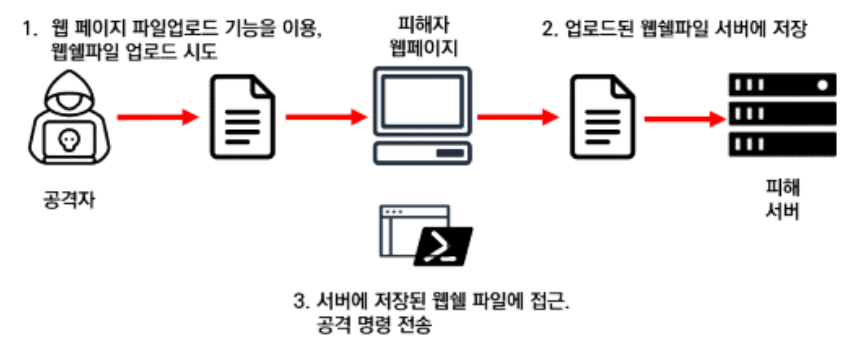최근 웹 해킹에서 자주 사용되는 기법이 Web shell 공격입니다. 기본적인 Web shell 공격은 피해 웹사이트의 파일 업로드 기능을 악용 하여 수행됩니다.